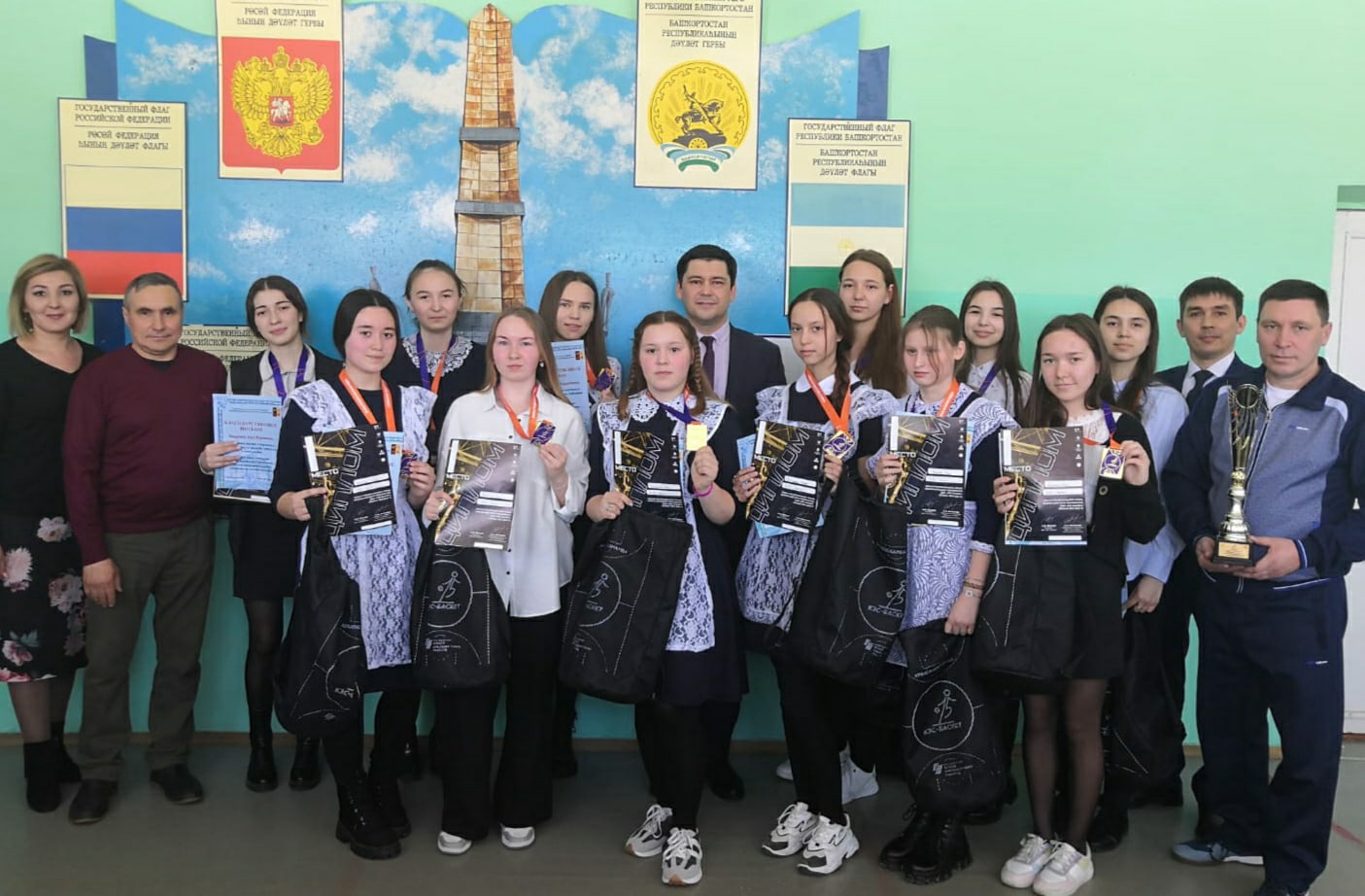 В рамках Всероссийского Чемпионата ШБЛ "КЭС-БАСКЕТ" сезона 2021-2022 гг. в МБОУ СОШ 2 состоялось торжественное награждение победителей финала регионального этапа - команды девушек.Глава администрации Шайхисламов Ф.Р. вручил баскетболисткам подарки, благодарственные письма Администрации МР Татышлинский район РБ и медали за победу на республиканском финальном этапе и получение путевки на Чемпионат Приволжского федерального округа в г. Ижевск.