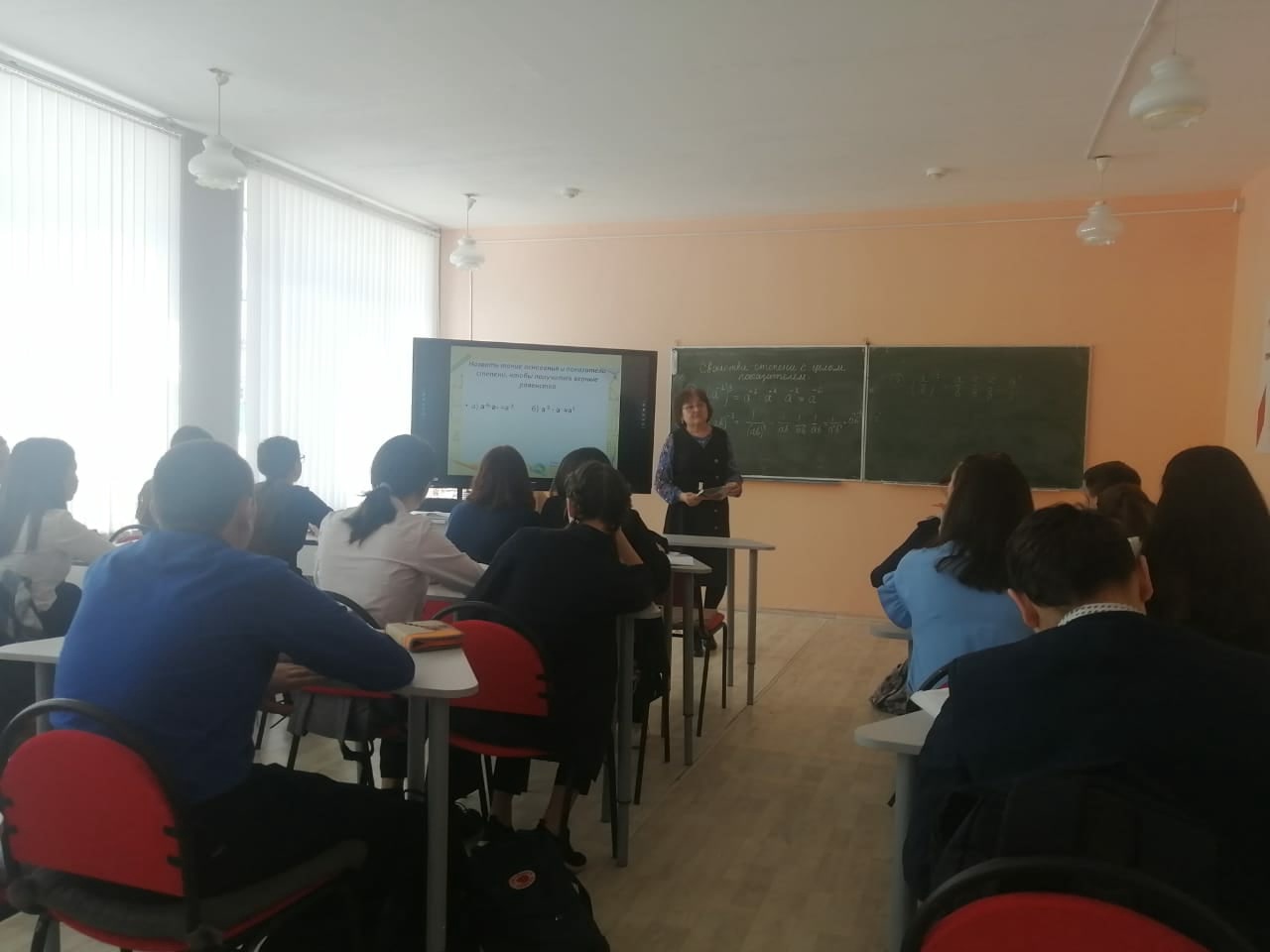 Открытый урок в 8А классе "Свойства степени с целм показателем" прошёл плодотворно. Обучающиеся вспомнили свойства степеней с натуральным показателем, решали упражнения по данный теме. Затем на конкретных примерах сформулировали свойства степени с целм показателем .Успели на уроке и прорешать примеры по теме, повторить все свойства степеней.