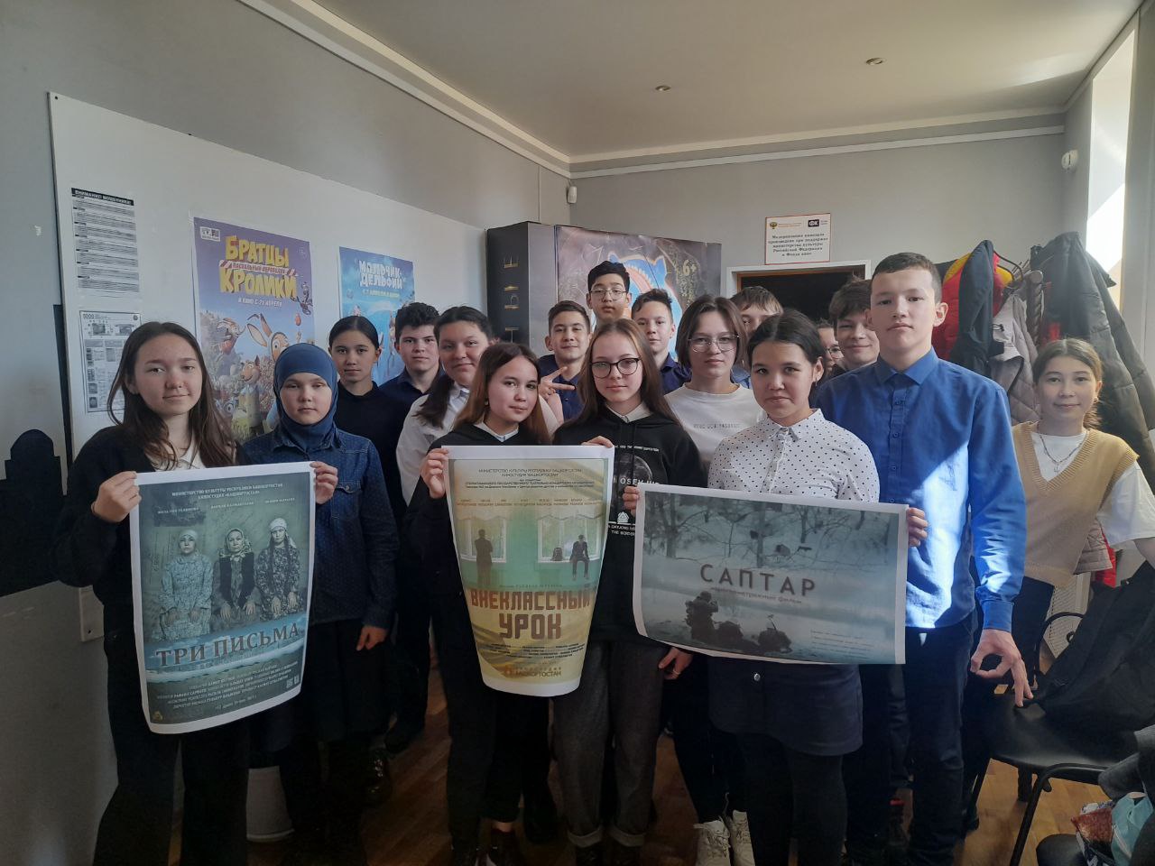 Работники кинотеатра 21 апреля пригласили учащихся 8Б класса на просмотр краткометражного фильма «Внеклассный урок». По сюжету, в одной из школ города 9 мая запланирован внеклассный урок, посвящённый Дню Победы. Но из-за невинной детской шалости мероприятие оказывается под угрозой срыва. Ребята понимают, что за свой нелепый поступок им придётся ответить по-взрослому. В результате запланированное событие не состоялось, но происходящее стало внеклассным уроком и для детей, и для взрослых. Ребятам фильм очень понравился.