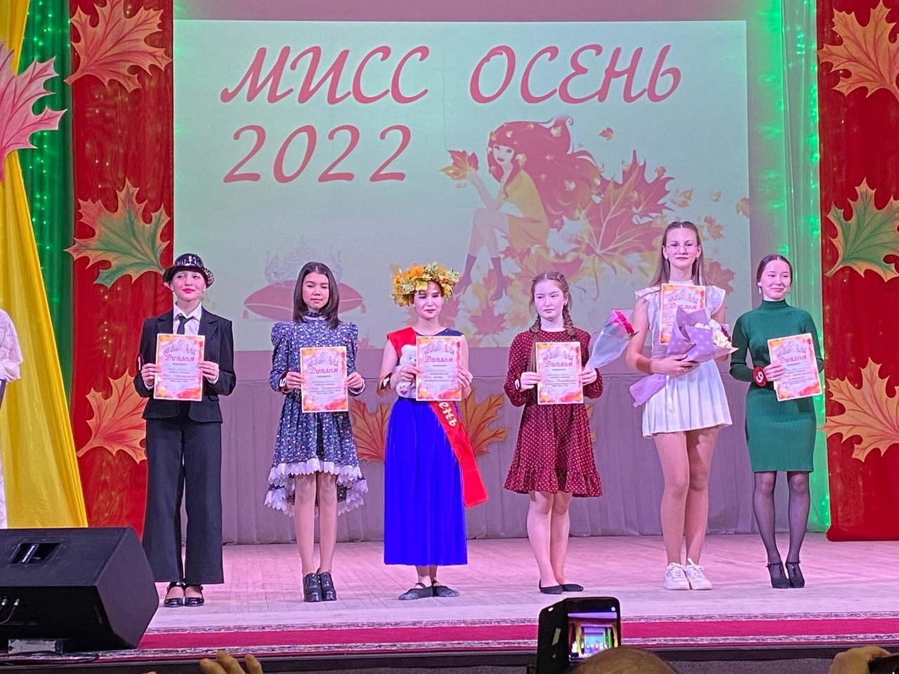 Сегодня в районном дворце культуры прошёл конкурс «Мисс Осень 2022». За титул «Мисс Осень» боролись 6 претенденток района, 4 из которых являются облучающимися нашей школы - Шайнурова Луиза (10 кл.), Талипова Гульшат (10 кл.), Тульвинсая Регина (9б кл.) и Шаехова Эльвина (9а кл.)