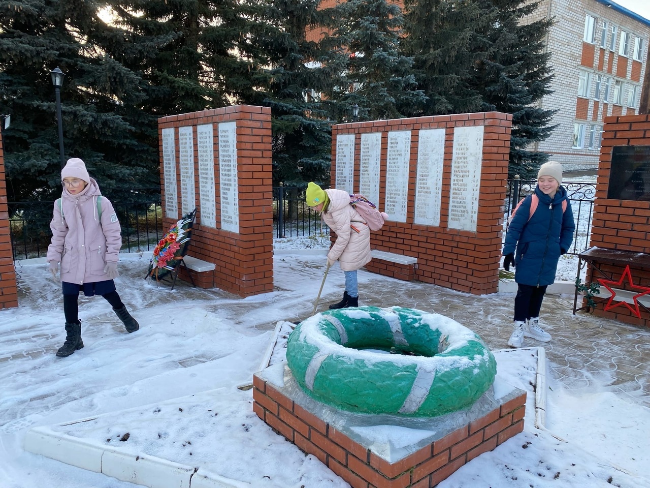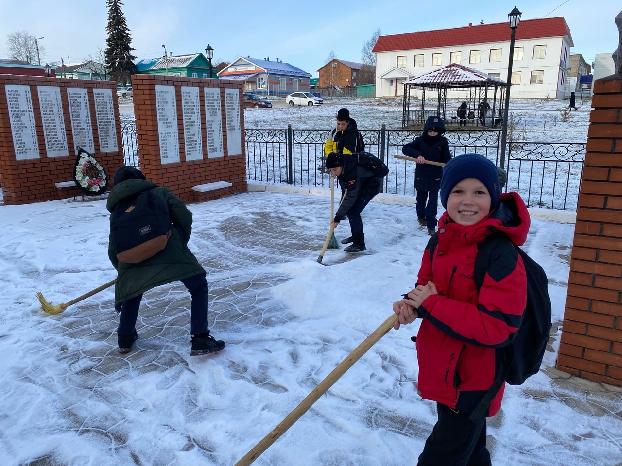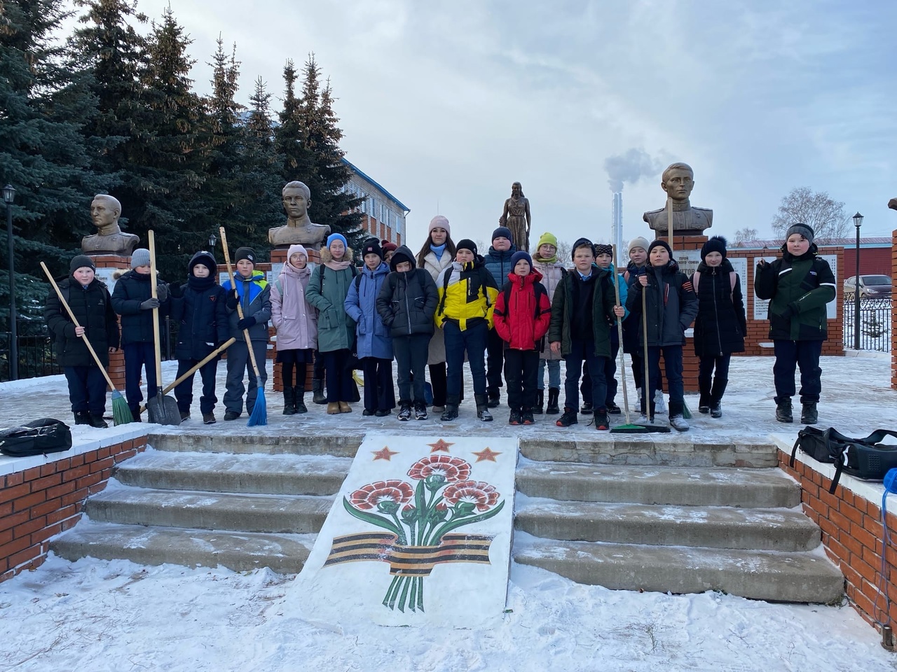 18 ноября учащиеся 5а класса очистили от снега памятники погибшим воинам-землякам в Великой Отечественной войне и расчистили прилегающие к ним территории.