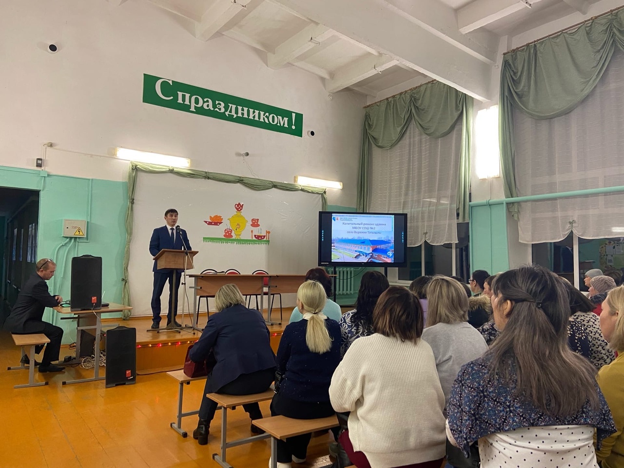 Капитальный ремонт здания школы(Бадертдинов Р.А., директор школы).После общешкольного собрания все родители разошлись по классам, где продолжились классные собрания.