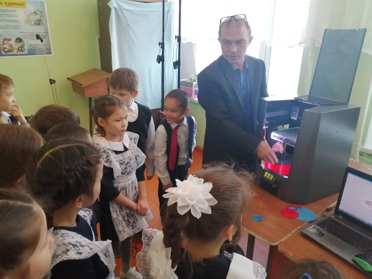 14 декабря, в рамках недели математики и информатики, учитель информатики, Бадрисламов Игорь Фёдорович, провел мастер - класс второклассникам по 3Д моделированию и печати на принтере. Он познакомил и рассказал с работой современного принтера. Детям интересно было получение перед глазами различных предметов из пластики: брелок, сердечко... Они узнали о масштабной области применения 3Д печати.