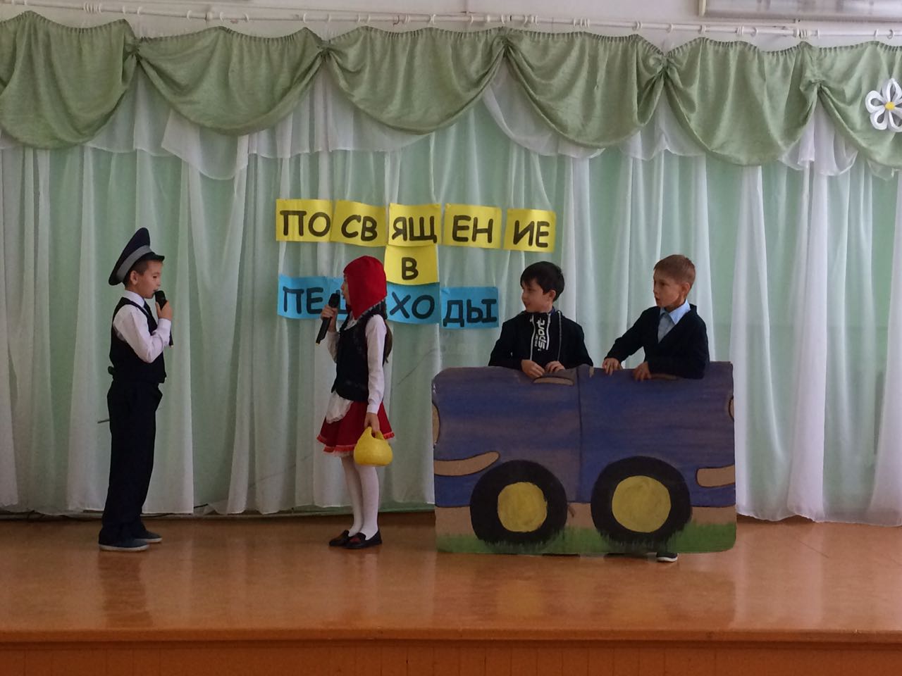 28 сентября в МБОУ СОШ №2 с.Верхние Татышлы стал необычным днем для первоклассников. Они уже почти месяц, как стали учениками, учатся правильно сидеть, читать, писать, слушать учителя. Каждый новый день для них - открытие! А сегодня на празднике Посвящения в пешеходы они доказали, что все ребята дружные, быстрые, внимательные. Первоклассники отправились на автомобиле в путешествие в страну Светофорию и застали там больного и неработающего Светофора Светофоровича и Незнайку, который любил ходить через дорогу на самый яркий и красивый, по его мнению, красный цвет светофора. Чтобы спасти Незнайку от попадания под колёса машин и вылечить Светофора Свтофоровича, малыши вместе с третьеклассниками и героями сказок решительно начали выполнять разные задания. В итоге ребята помогли выздороветь Светофору Светофоровичу и доказали Незнайке, что знать и соблюдать правила дорожного движения очень важно для сохранения своей жизни. После всех приключений в волшебной стране первоклассники получили удостоверения пешехода и небольшие подарки, а домой "возвращались" на самолёте! Яркие ребята получили на ярком празднике яркие подарки!