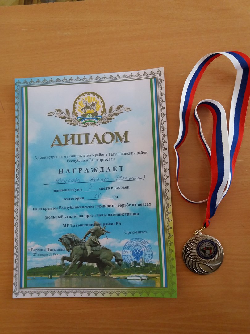 Сегодня на школьной линейке поздравили ученика 10 Б класса МБОУ СОШ №2 с. Верхние Татышлы Юсупова Артура, занявшего 2 место на открытом Республиканском турнире по борьбе на поясах (вольный стиль) на приз главы администрации МР Татышлинский район РБ. Артур не первый раз участвует в спортивных соревнованиях. Он с 7-го класса занимается в ДЮСШ и участвует в спортивных соревнованиях, а руководителем является Гилязев И.А. Молодец, Артур! Желаем тебе новых побед и успехов!