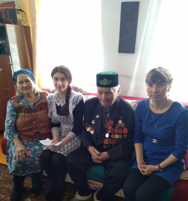 На днях мы побывали в гостях у ветерана Великой Отечественной войны Шайхуллина Хайруллы Шайхуловича. Встреча прошла в очень теплой дружеской атмосфере.  Бакирова Алсу спросила ветерана о трудностях войны, на что он, вздохнув, начал вспоминать. Он рассказал, как хотел попасть на фронт, старался делать все для победы нашего народа. Ветеран поведал о трудных, суровых военных временах, о военных действиях, о труде наших женщин и детей в тылу, об испытаниях, которые выпали на долю советского народа, как, несмотря ни на что, наш народ выстоял и победил . В конце Хайрулла абый пожелал, чтобы нынешнее поколение уже с детства занималось спортом, чтобы детям никогда не довелось увидеть войну. А самой ученице он пожелал уважать своих родителей и близких, со временем успешно окончить школу, выбрать хорошую профессию. Ученица с интересом выслушала уважаемого ветерана и поблагодарила его за очень поучительный рассказ. То, что было услышано, не пройдет бесследно. Спасибо ветерану, что он всегда готов встретиться с юным поколением, рассказать о пережитом. Такие встречи школьников с ветеранами воспитывают патриотизм, уважительное отношение к заслуженным людям и уважение к прошлому. Здоровья Вам, Хайрулла Шайхуллович!
