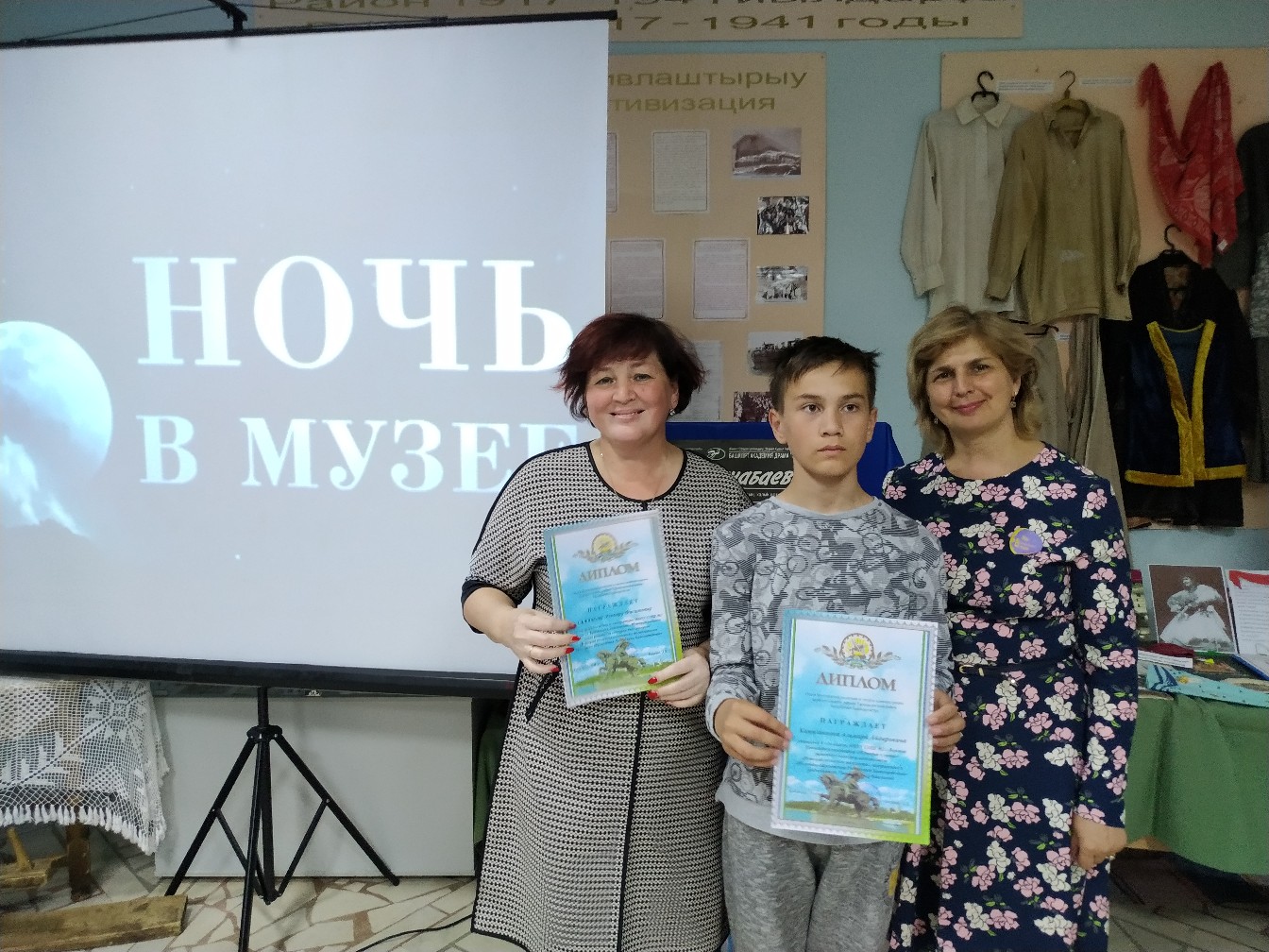 В Татышлинском музее на днях прошла акция "Ночь в музее", приуроченная к Международному дню музеев. На данное мероприятие были приглашены с нашей МБОУ СОШ 2 учителя Ситдикова Э. Ф., Утяшева А. Н. и обучающийся 6а класса Камильянов А. В ходе мероприятия состоялось награждение призеров и победителей районного конкурса видеороликов " История сельского поселения ", посвященного 100-летию образования Республики Башкортостан, в котором принимали участие представители нашей школы. По результатам конкурса Альмир признан победителем в номинации "История в лицах" (руководитель Утяшева А. Н.), а Эльвира Фагимовна - победителем в номинации "История родного края". Молодцы!!!