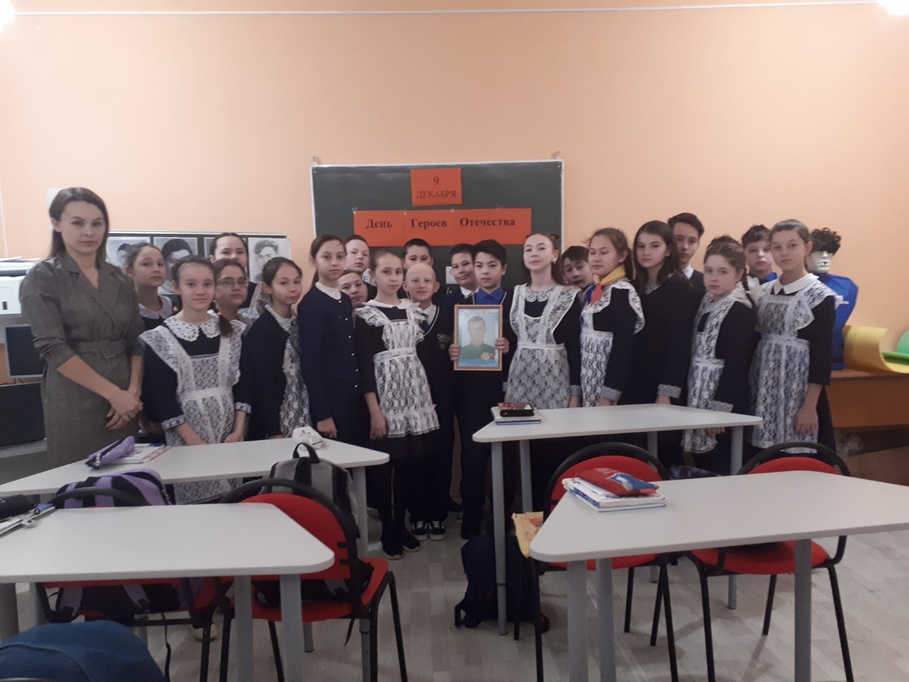 В МБОУ СОШ №2 в преддверии праздника - День Героев Отечества - прошли тематические классные часы. В 6 а классе перед одноклассниками выступил праправнук героя Великой Отечественной Войны – Шайнуров Тимур. Словно кадры из фильма пролетали перед глазами, когда слушали рассказ Тимура о его прапрадедушке. Бадртдинов Миннулла – гордость нашего района. Сержант М. Б. Бадртдинов совершил подвиг в августе 1943 года при форсировании реки Днепр севернее села Войсковое Днепропетровской области, действуя в составе отряда по захвату плацдарма. Во время захвата третьей линии траншей Бадртдинов первым поднялся в атаку, увлекая за собой остальных, и в завязавшейся рукопашной схватке лично заколол трёх солдат противника. В этом бою погиб. За мужество и героизм, проявленные в бою, в марте 1944 года Минулле было посмертно присвоено высокое звание «Героя Советского Союза».