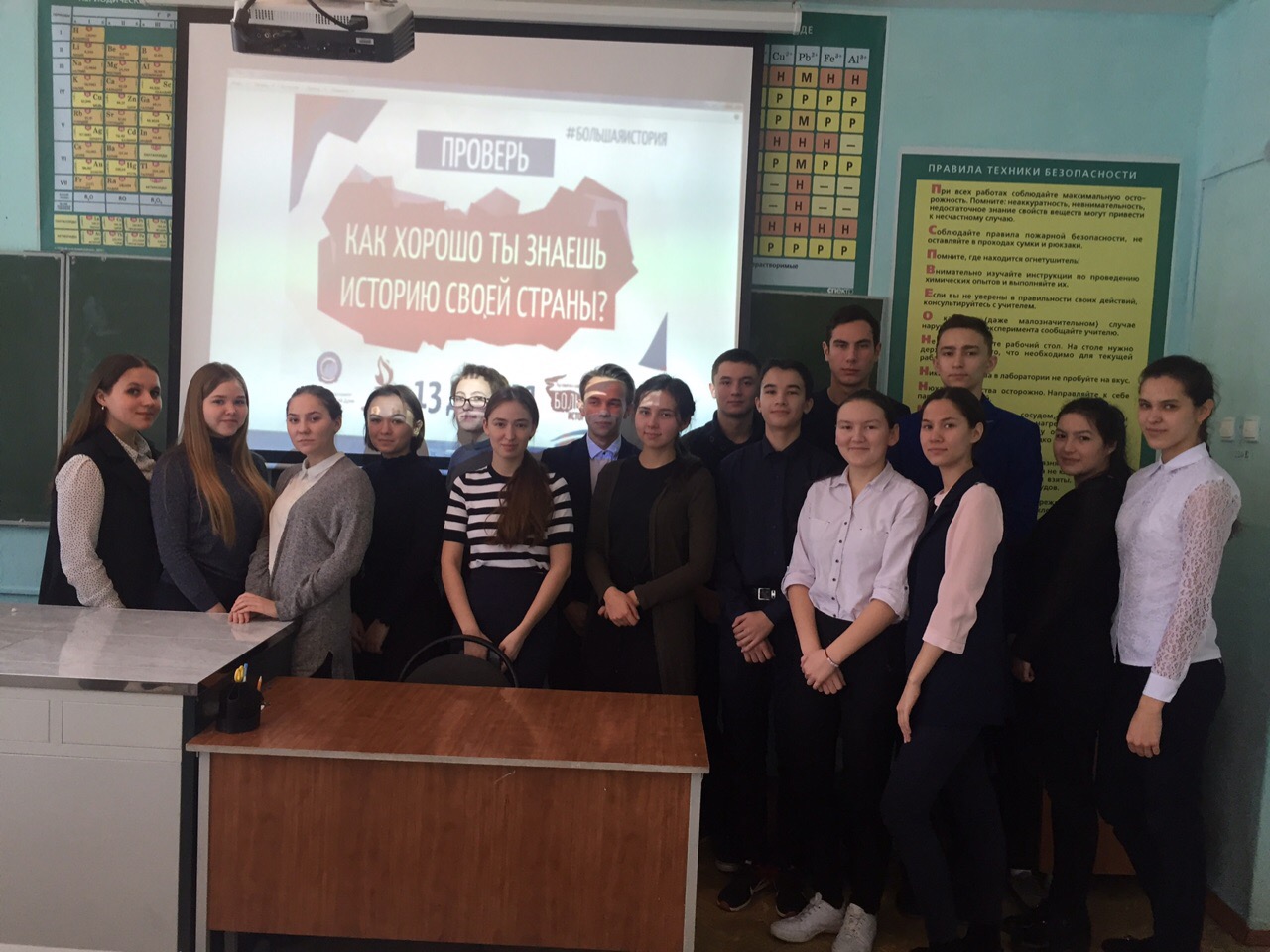 13 декабря обучающиеся 11 класса под руководством учителя истории Набиоковой Л.Х. приняли участие в данной акции - прошли онлайн тестирование. Участникам были предложены 40 вопросов на знание всех периодов отечественной истории. По окончании теста все ребята получили сертификаты.
