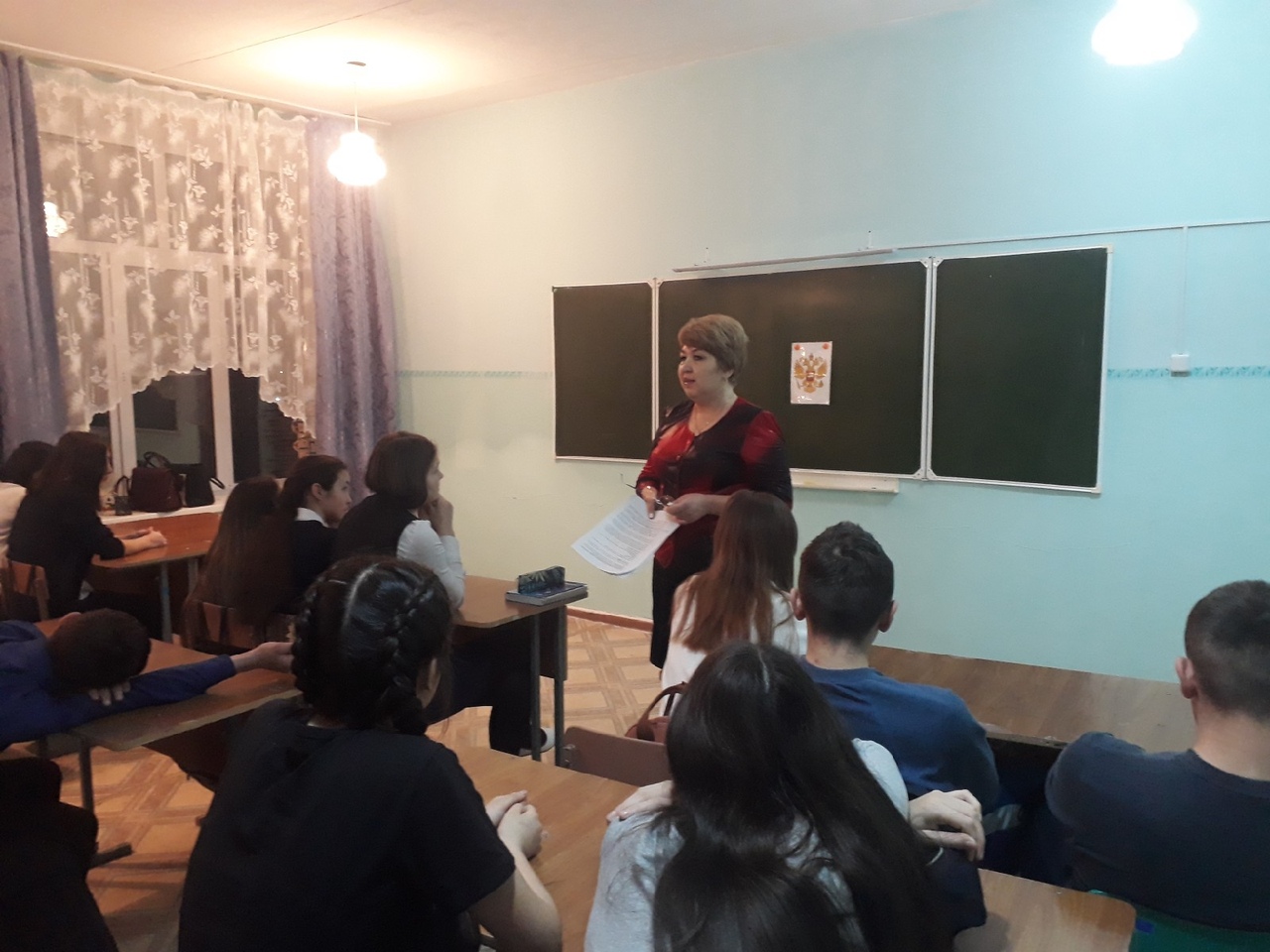 В связи с днем Конституции Российской Федерации, в целях воспитания у подрастающего поколения высокой гражданской активности, чувства патриотизма, интереса к политической жизни страны, избирательным процессам, в МБОУ СОШ No2 был проведен совместный классный час для 9-х классов. Социальный педагог школы Зинфира Мавлитяновна кратко напомнила обучающимся об истории Конституции, а также рассказала о роли основного закона государства в жизни человека. На мероприятии подробно были обсуждены разделы, из которых состоит Конституция. Школьники отметили важность соблюдения общих правил гражданами страны и членами любого сообщества, в том числе в образовательной организации, как во время занятий, так и на переменах. Поговорив о правах и обязанностях, ребята отвечали на вопросы викторины и создали «свое государство» со своими законами. Мероприятие закончилось исполнением Гимна РФ.