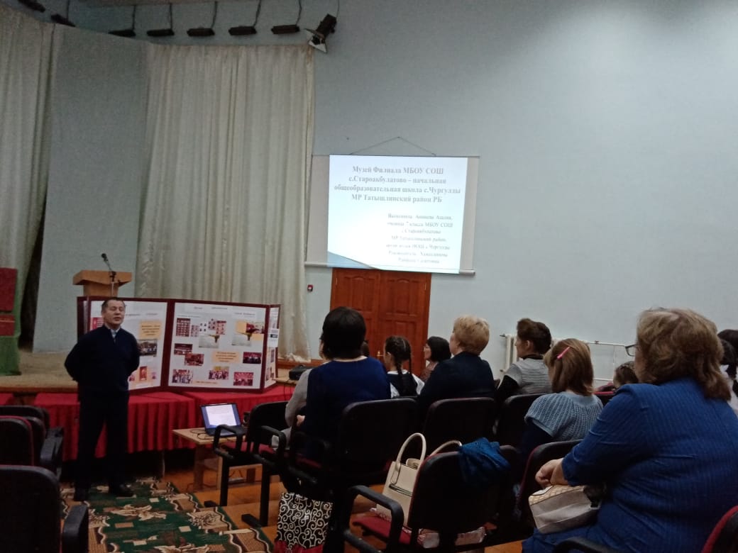 29 февраля в МБО ДО ЦДТ прошел муниципальный этап Всероссийского конкурса музеев образовательных организаций РФ, посвященном 75-летию Победы в Великой Отечественной войне 1941-1945 годов и 85-летию Татышлинского района. Наш школьный музей представляла руководитель музея Аюпова Зинфира Мавлетьяновна