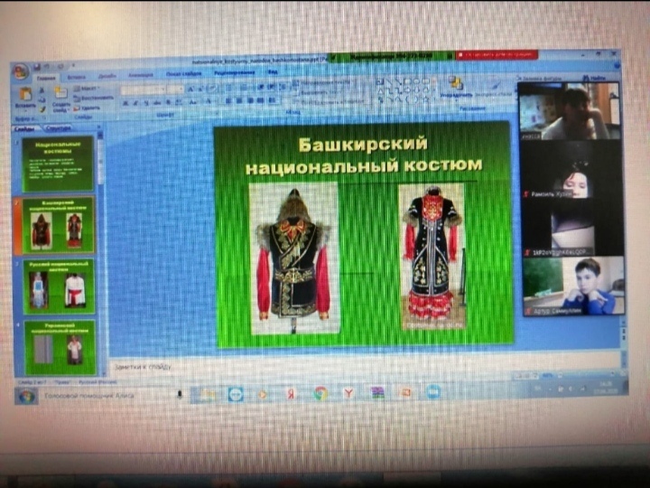 В нашей школе учителями начальных классов к этому празднику проведены классные часы, на которых детей знакомили с различными национальными костюмами и особенностями декора. В увлекательной, ненавязчивой форме созданы условия для запоминания культурной идентичности представителей разных национальностей, проживающих в республике. Во время классного часа дети значительно пополнили свой лексикон новыми словами (елян, казакин, ичиги, кашмау, зипун, кафтан, понёва, лапти и др). Дети узнали много нового о национальных костюмах, о их самобытности и неповторимости, также вспомнили виды орнамента, характерных для национального костюма. В ходе беседы проведены игры на внимательность «Назови национальный костюм», «Пропущенные слова». Дети с удовольствием рисовали национальную одежду своего народа.