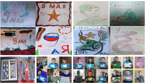 К 75-летию Победы в Великой Отечественной войне обучающиеся 2 а класса подготовили рисунки и поделки. В своих работах ребята изобразили картины сражений, вечный огонь, символ мира, солдат-освободителей, салют.