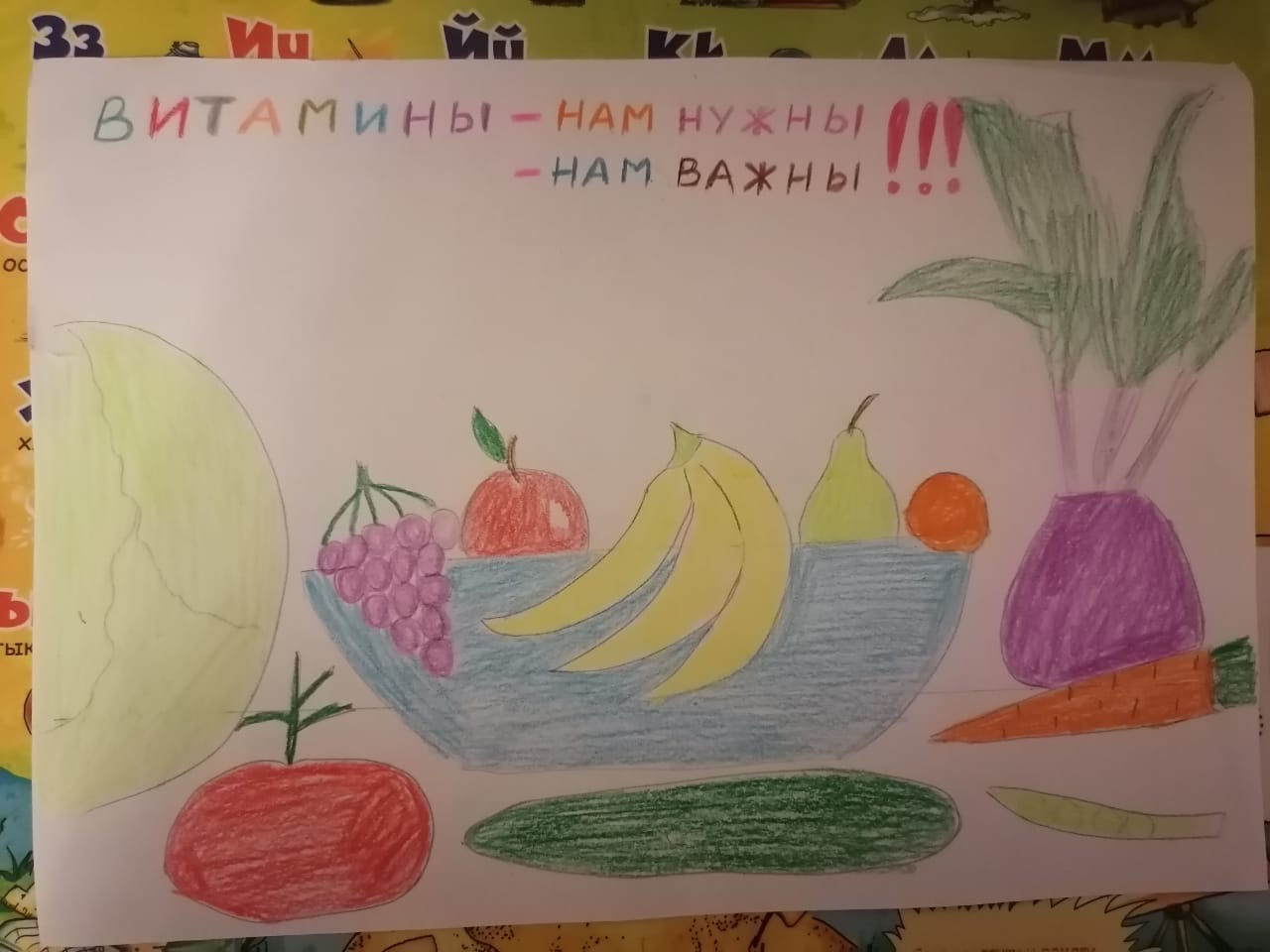 В рамках Единого республиканского дня открытых дверей «Родители Башкортостана за здоровое питание!» в 1Б классе прошел урок здоровья «Витамины в жизни человека». В ходе которого первоклассники обобщили знания о полезной и вредной еде, узнали в каких продуктах содержатся витамины A, B, C, D. Много интересного о витаминах узнали из мультфильма "Смешарики. Исправительное питание". В игровой форме подвели итог урока. Также ребята стали участниками конкурса рисунков «Мои любимые продукты».