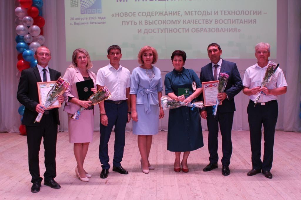 На ней были подведены итоги прошедшего учебного года, определены планы на будущее и вручены высокие награды учителям, в том числе и учителям нашей школы. Шамсетдинов Ильдар Агзамович был отмечен нагрудным знаком «Почётный работник воспитания и просвещения РФ». Знаком «Отличник образования РБ» были удостоены Ситдикова Эльвира Фагимовна и Бадрисламов Игорь Фёдорович. Игорю Фёдоровичу также была объявлена благодарность Министерства образования и науки РБ за высокий уровень организации и проведения ЕГЭ в Татышлинском районе. За добросовестный труд в системе образования РБ Муллаяровой Эльвире Рифовне была вручена Почётная грамота Министерства образования и науки РБ. Глава Администрации Татышлинского района Шайхисламов Ф.Р. отметил достойный труд Ситдикова Роберта Ахнавиевича в подготовке призёра Регионального этапа олимпиады по черчению Почётной грамотой Администрации Татышлинского района.