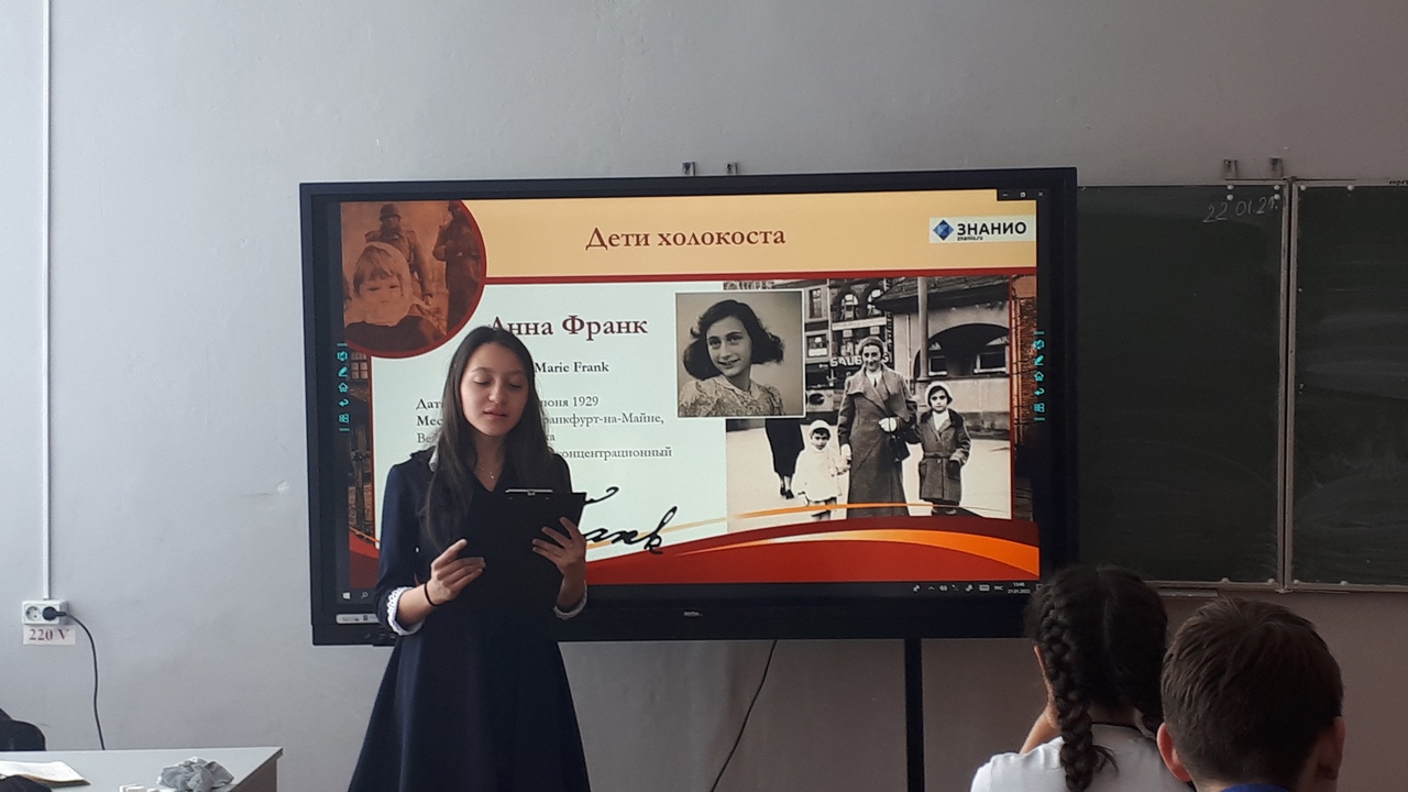 В 8 а классе был проведен Урок памяти, посвященный одному из самых страшных преступлений в истории человечества – массовому уничтожению нацистами еврейского населения в 1933-1945 гг. Затаив дыхание, ребята смотрели фильм о преследовании и уничтожении невинных людей фашистами, о деятельности концентрационных «лагерей смерти», об уничтожении без разбора: несмышленые ли это дети, подростки или немощные старики. Также обучающиеся узнали, в каких художественных произведениях, поэзии и кинофильмах нашли отклик эти страшные события.