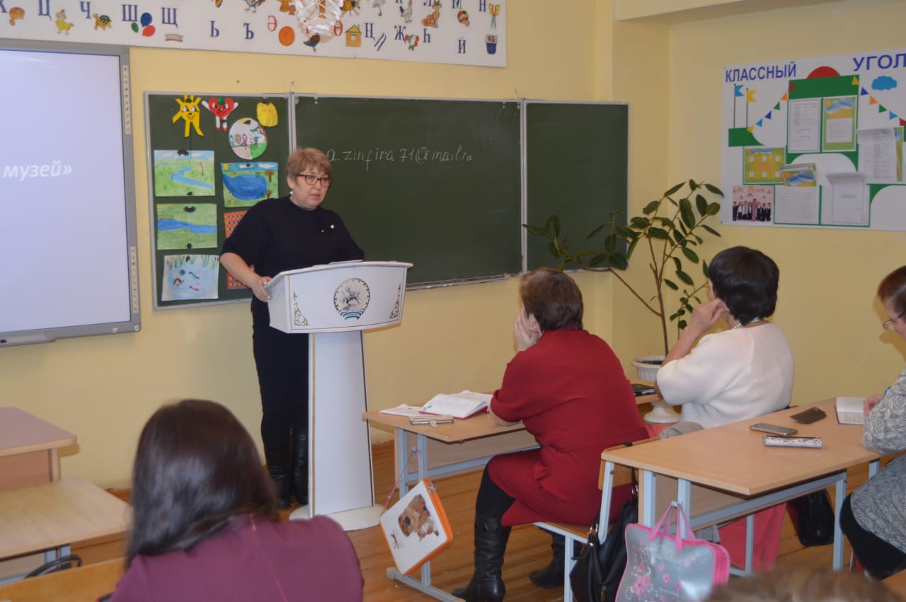 Семинар открыл начальник отдела образования Фарвазетдинов А. М. Он рассказал о состоянии школьных музеев района. Руководитель музея НОШ с. Чургылды Хаматдинова Р.С.поделилась опытом своей работы и участия в районных и республиканских краеведческих конкурсах. Моя тема выступления была "Методика и подготовка документации на паспортизацию школьных музеев". Об электронной паспортизации школьных музеев в системе ГИС на платформе "Детский отдых РФ" рассказала методист МБО ДО ЦДТ Марданова Л.Л.