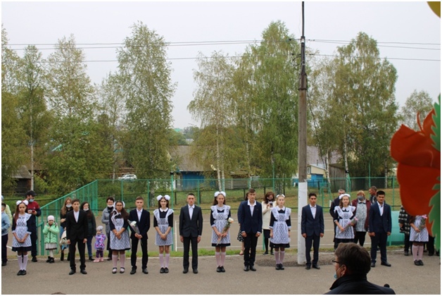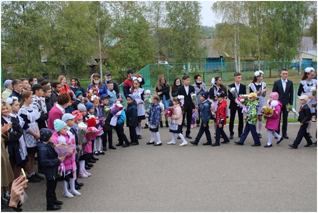Нарядные ученики и ученицы с пестрыми букетами цветов, учителя и родители заполнили школьный двор. Звучит музыка, девятиклассники и одиннадцатиклассники строятся на школьном дворе. Все замерли на торжественной линейке под звуки гимна России и Республики Башкортостан. По традиции первыми представляют малышей-первоклассников, их в этом году 62 . Директор школы Бадертдинов Руслан Алдафович и гости Валеев Ильдар Хурматович - исполняющий обязанности главы администрации сельского поселения Верхнетатышлинский сельский совет, Габдуллина Гульнара Харисовна - методист ЦДТ, Арсланова Айгуль Азатовна - инспектор по пропаганде безопасности дорожного движения, поздравили обучающихся школы с новым учебным годом, отметив, что учение - нелегкий, но радостный и увлекательный труд. Пусть новый учебный год станет для всех ярким и плодотворным, интересным и полезным общением, духовно, интеллектуально обогатит и ребят, и их педагогов. С ответным словом выступила группа малышей - первоклассников, которые с выражением прочитали выученные стихотворения. Наступило время первого школьного звонка в этом учебном году. Это почетное право было предоставлено обучающимся 11 класса Бакировой Алсу и Бадрисламову Денису и первоклассникам Минигараеву Матвею и Мухиевой Арине.