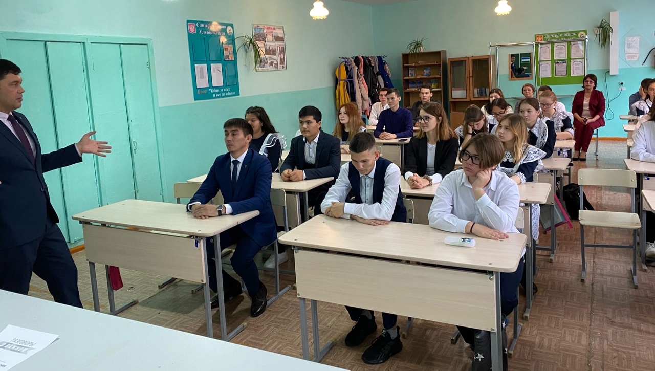 Фанур Рафисович побывал на уроке вместе со старшеклассниками. Ребята вместе с классным руководителем Утяшевой А. Н. вспомнили ученых, внёсших большой вклад в развитие российской науки, выдающиеся открытия К. Э. Циолковского. Далее была проведена беседа по видеосвязи с выпускником нашей школы, кандидатом физико-математических наук, доцентом Уфимского университета науки и технологий Гафуровым Ильдаром Газнавиевичем. Ильдар Газнавиевич рассказал о своей деятельности, а также о специальностях естественно-научного направления и пригласил будущих выпускников в основной вуз республики.
