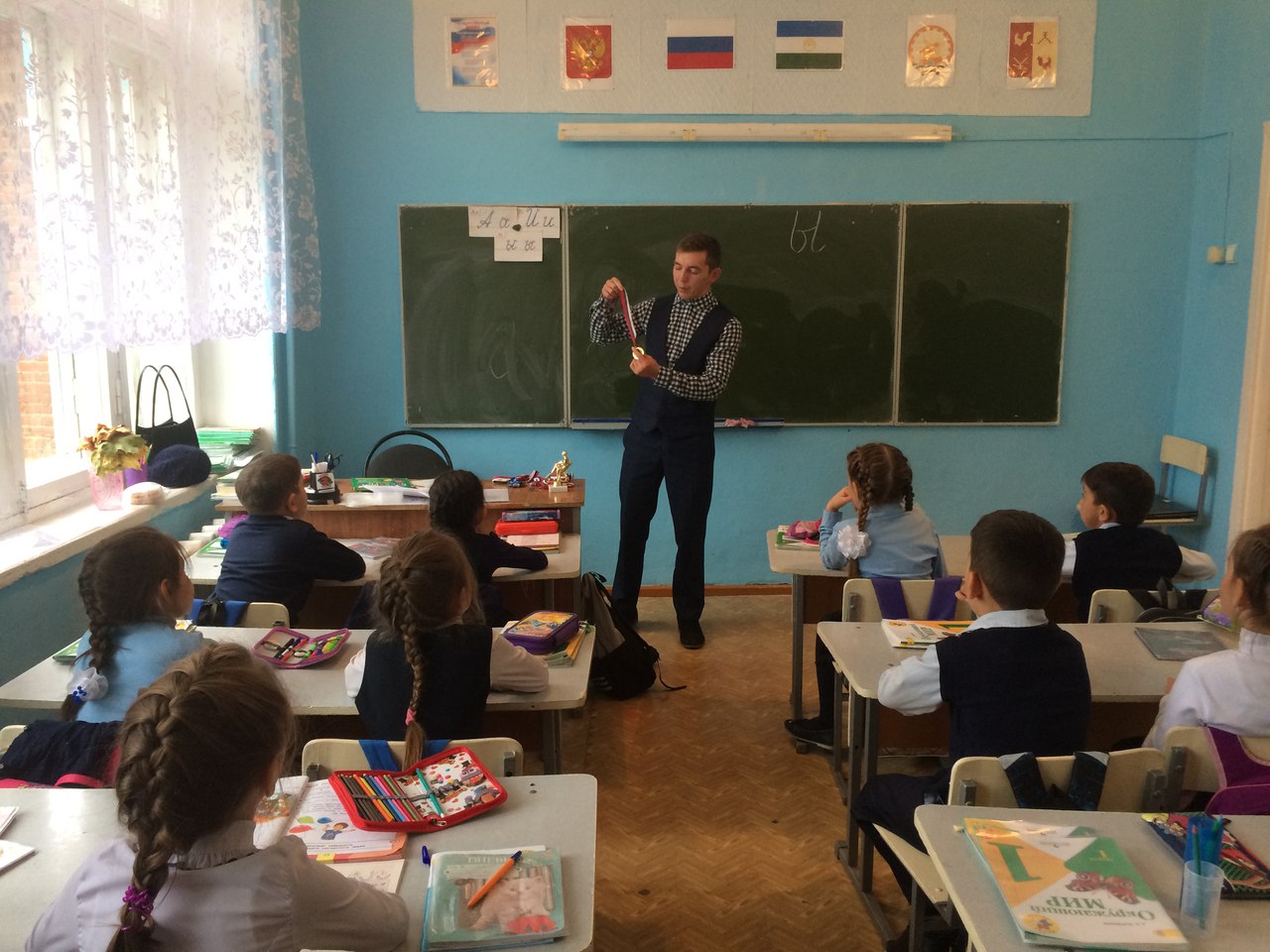 Наша школа тоже включилась в этот проект. По заявлениям родителей 1б класс был сформирован как спортивный класс – участник проекта. Если ребенок здоров и физически развит, он будет успевать по всем предметам. Детям занятия нравятся, родители довольны. А разве это не самое главное? Показательно, что родители активно поддерживают ребят и заинтересованы в результате. Была организована встреча с бронзовым чемпионом мира по борьбе «Куреш» Рамазановым Юниром. В них участвовали и взрослые, и дети. Ребята ежедневно занимаются общефизической подготовкой и каждую субботу - плаванием. Определенной направленности по видам спорта пока нет, так как наша первостепенная задача на сегодняшний день - укрепить здоровье детей и подготовить их к сдаче нормативов ГТО на последующих ступенях. Первый класс – это начальная первая ступень в ГТО. Малыши попробовали сдать нормативы первой ступени ГТО, результаты неплохие.