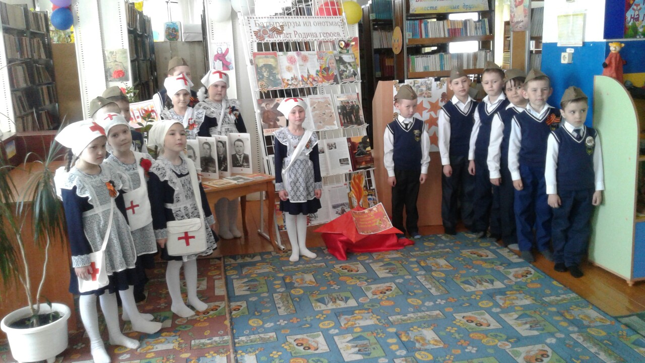 "Не забудет Родина героев", под таким многозначительным названием прошло мероприятие для юных гостей детской библиотеки. Много исторических фактов о Великой Отечественной войне узнали ребята сегодня, прослушали записи объявления войны, о том как фашисты жестоко напали на нашу Родину. Также была организована выставка про героев ВОВ нашего района, героев Советского Союза и героев тыла. Каждый обучающийся 1б класса заинтересованно слушал историю Второй мировой войны и почтил память героев минутой молчания. В конце мероприятия ребята подарили песню в своём исполнении.