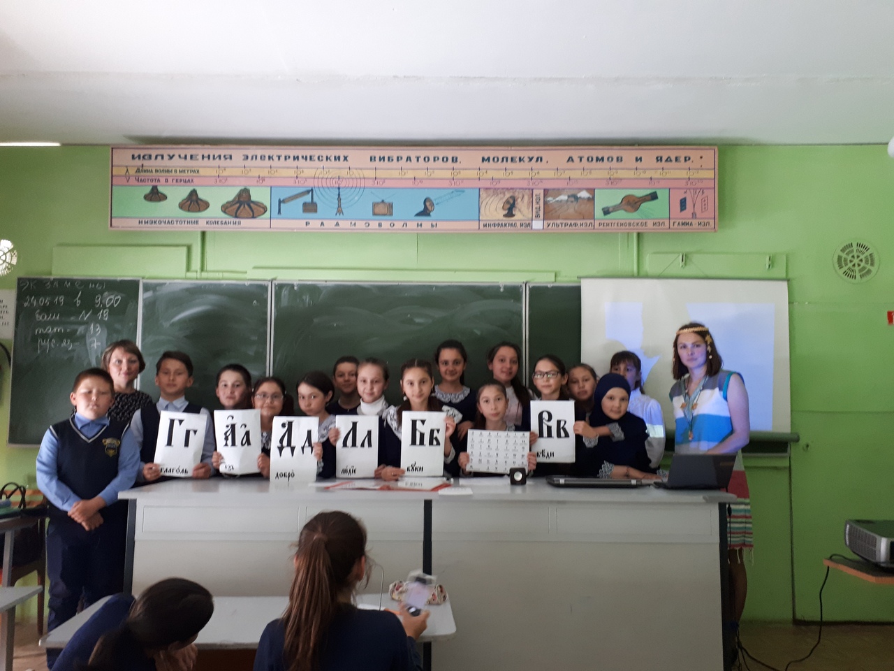 24 мая - День славянской письменности и культуры. В рамках данного мероприятия в МБОУСОШ №2 организованы тематические классные часы, уроки, конкурсы. Для обучающихся 5-х классов 22 мая был проведен праздник «Азъ и Буки». Учащиеся вместе с учителями Минигараевой С.В. и Шакировой Ю.С. отправились в далекое прошлое, где их ждала интересная встреча с буквами из кириллицы. Вместе с ними ребята пели русские народные песни, отгадывали загадки, вспоминали пословицы и играли в народные игры. Таким необычным образом пятиклассники узнали о зарождении русской письменности, о возникновении славянского письма, о заслугах братьев Кирилла и Мефодия в истории русской культуры.