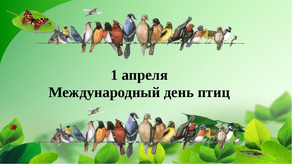 Ежегодно 1 апреля отмечается Международный день птиц (International Bird Day) — интернациональный экологический праздник. Его цель — сохранение видового разнообразия и численности птиц.