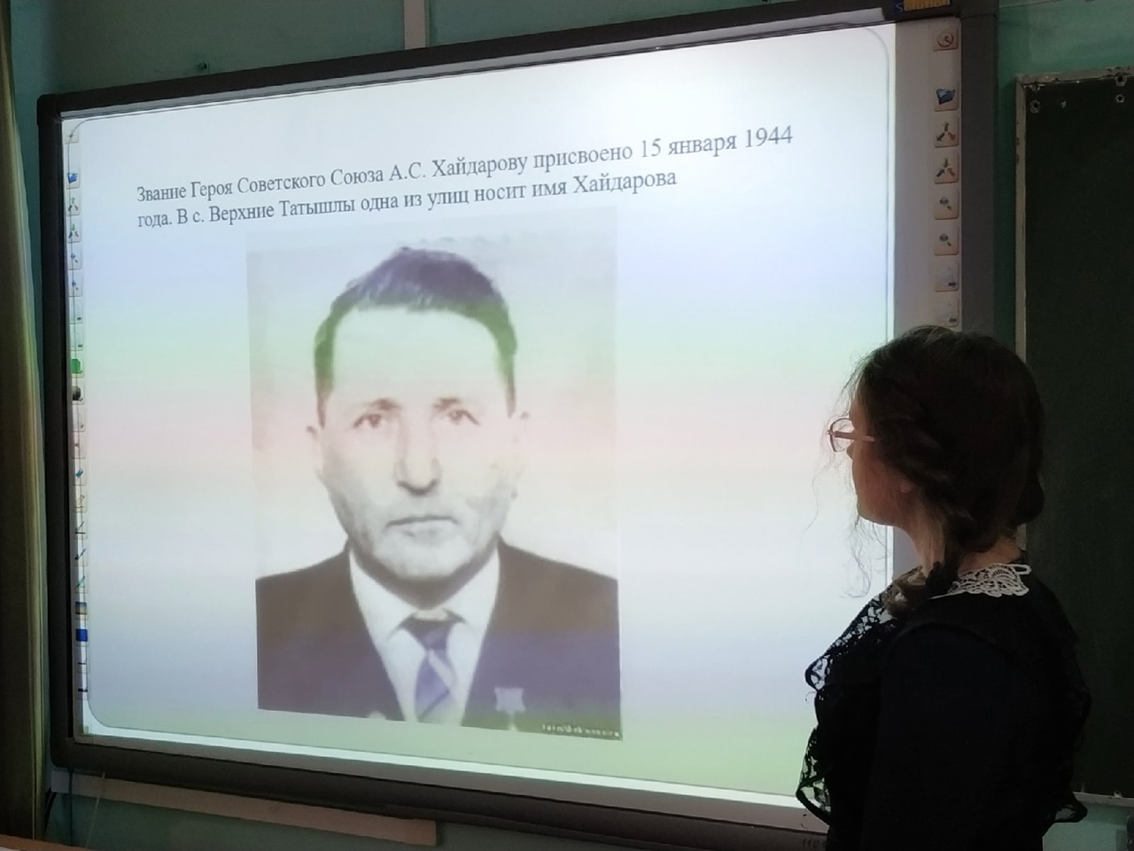 День Героев Отечества в России - это памятная дата, которая отмечается в нашей стране ежегодно 9 декабря. Много героев в нашей стране, невозможно рассказать обо всех. Но мы помним и гордимся их подвигами. Сегодняшний классный час " Гордимся славою героев" в 8а классе был посвящен героям Великой Отечественной войны Татышлинского района. Многие татышлинцы на полях сражений показали пример смелости, отваги и бесстрашия. Родина высоко оценила ратный подвиг татышлинцев. Четверым воинам-землякам присвоено звание Героя Советского Союза - М. Бадретдинову, А. Хайдарову, Г. Саитову и Н. Ведерникову.