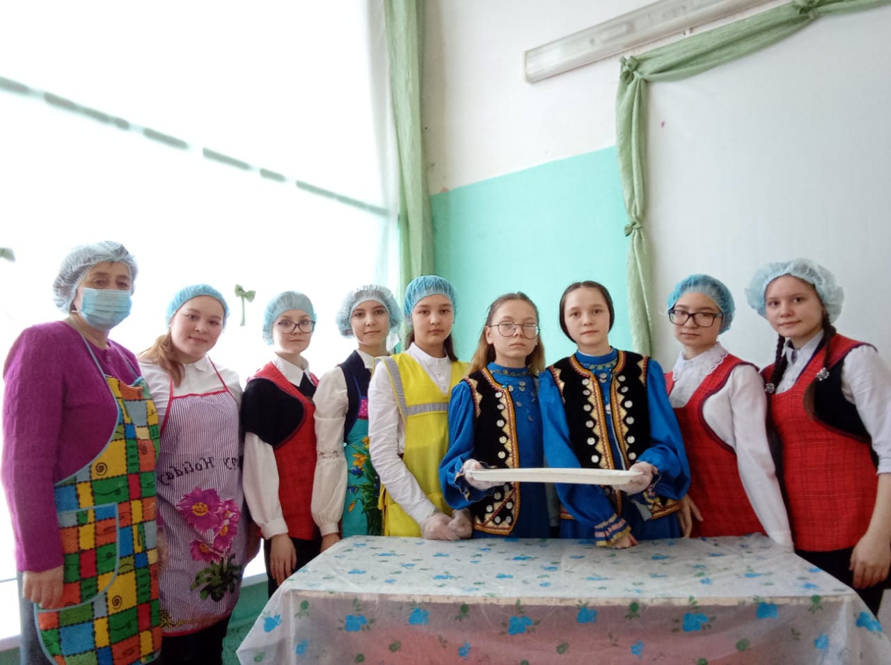 Обучающиеся 8х классов решили приготовить тукмас и баурсак. Тукмас — это лапша, которая используется в традиционном башкирском супе, а баурсак — традиционное блюдо башкир в виде небольших пончиков (круглых или квадратных), изготовляемых путём жарки во фритюре. Девочки принесли выполненный самостоятельно в домашних условиях сладкий баурсак с мёдом и поделились своим опытом с одноклассниками. А на уроке технологии ученицы учились правильно замешивать, раскатывать тесто и нарезать лапшу. Девочки планируют использовать полученные на мастер-классе навыки дома, чтобы порадовать своих близких.