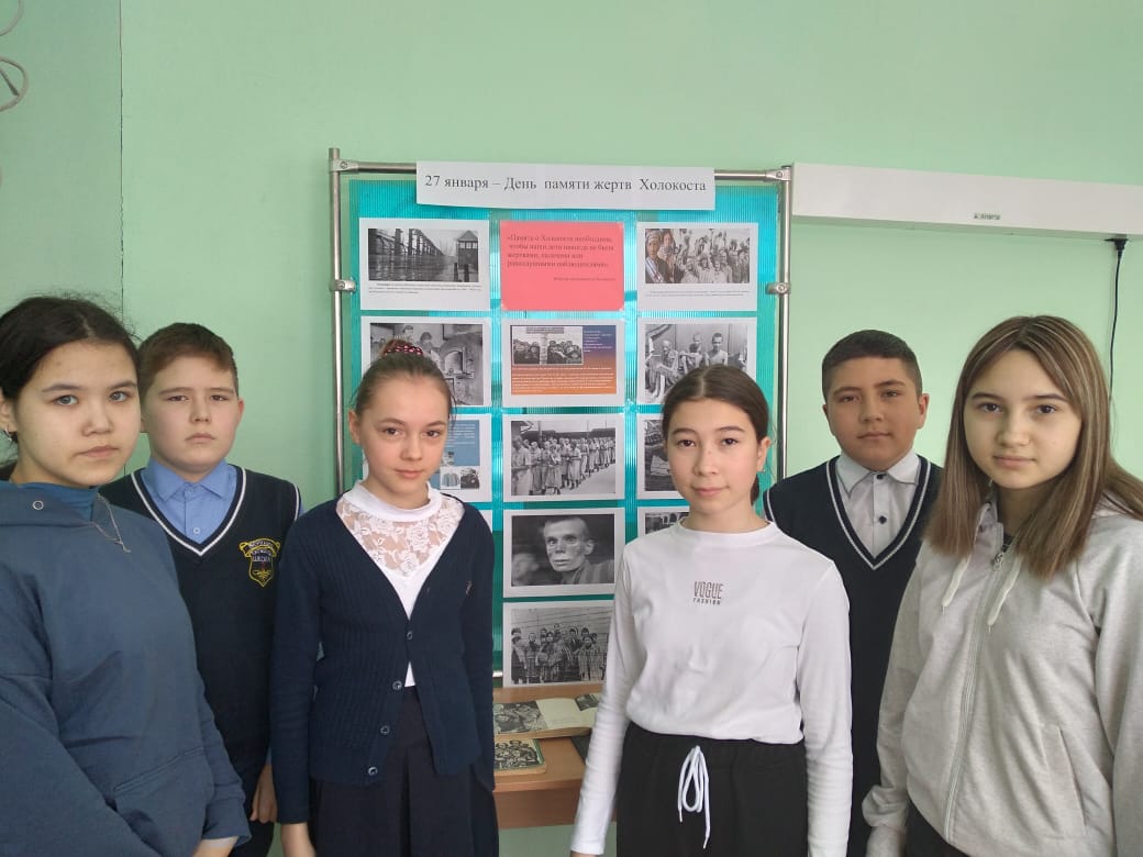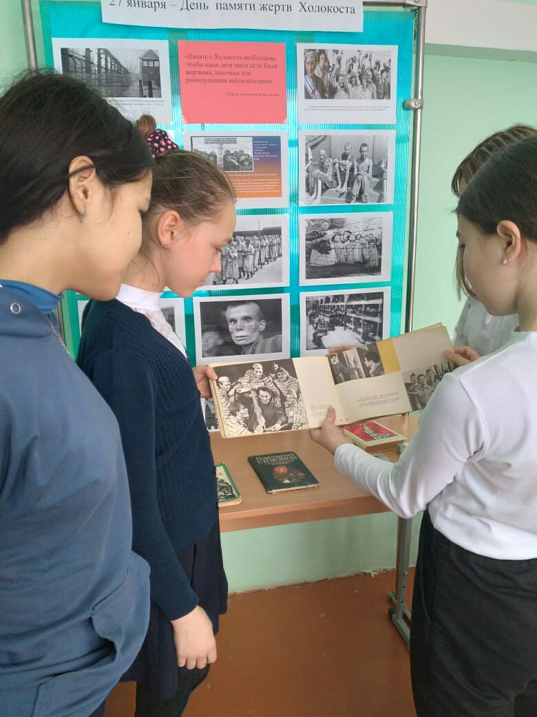В школьной библиотеке провели мероприятие, посвященное этой дате. Обучающиеся 7б класса слушали о бесчеловечных и жестоких поступках, которые совершались над заключенными. Слушали стихи татарского поэта, Мусы Джалиля, который был казнен в концлагере. В конце мероприятия дети ознакомились с книжно - иллюстративной выставкой.