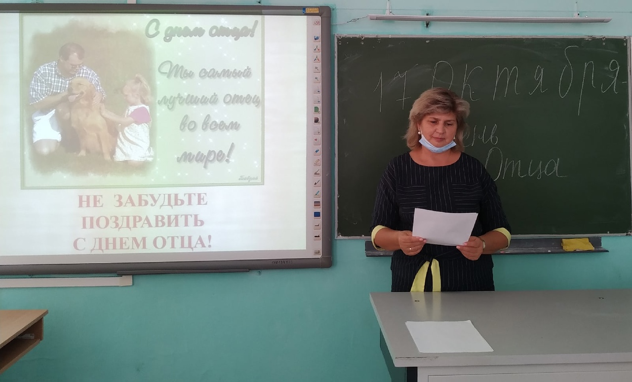 Впервые День отца в России отметят 17 октября 2021 года. Соответствующий Указ об этом подписал Президент РФ Владимир Путин. День отца будет праздноваться ежегодно в третье воскресенье октября. День отца утвержден "в целях укрепления института семьи". В преддверии нового праздника в 9а классе прошел классный час, посвященный Дню отца с целью воспитания у школьников уважения и любви к самому близкому человеку - папе. Ребята ознакомились с историей праздника, традициями празднования, а также услышали несколько притчей о роли отца в семье.